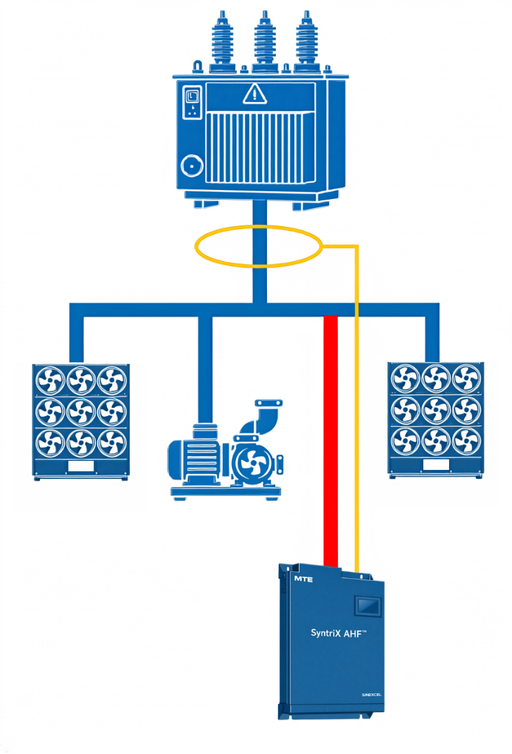 Active harmonic filters measure system harmonics and produce anti-harmonics to cancel them. Traditional active filters utilize Insulated Gate Bipolar Transistor (IGBT) based technology. MTE’s SyntriX AHF™ leverages silicon carbide (SiC) technology. which can result in an increase in system efficiency by up to 1% compared to an IGBT filter. For datacenters where power consumption is significant, this 1% difference is substantial.