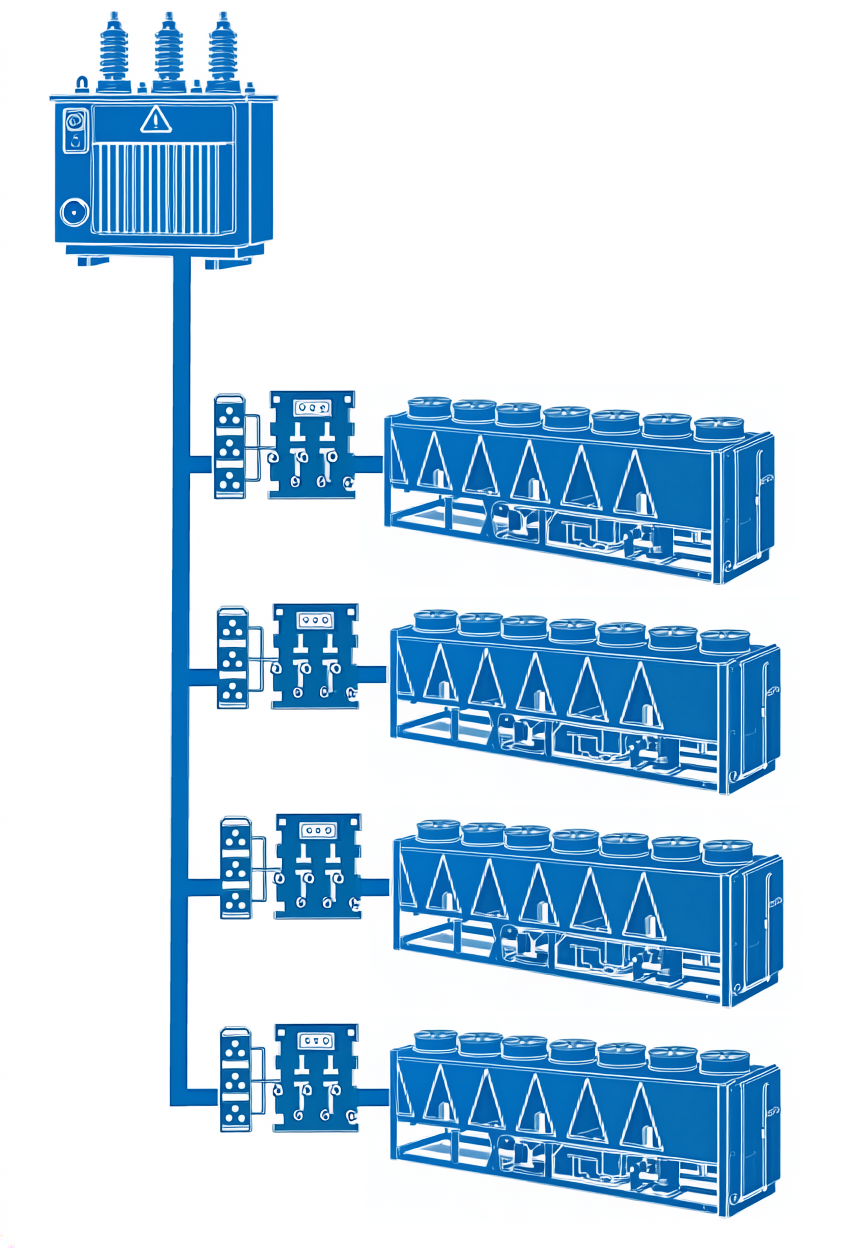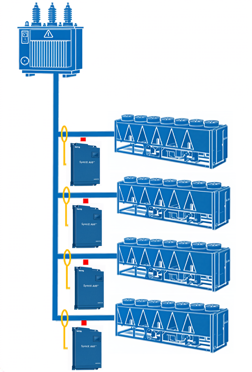 One of the biggest sources of harmonics in datacenters is chillers. Due to the large number of harmonics produced by each individual chiller, harmonic mitigation is often addressed on each piece of equipment. Harmonics can be mitigated with either passive (Figure 3) or active (figure 4) filter solutions.