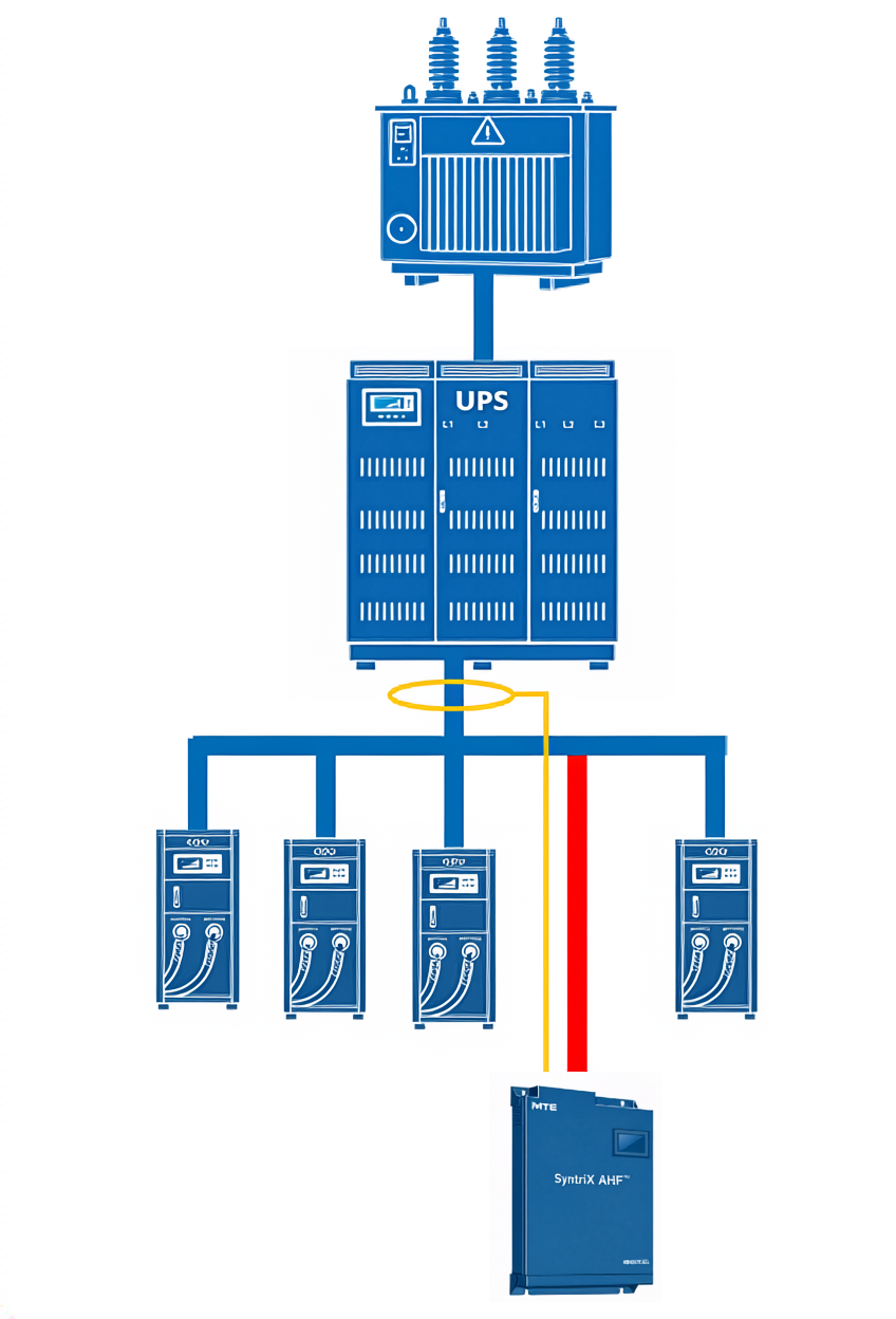 Another potential location is on UPS outputs. UPS systems are not designed to support high amounts of harmonic currents. Active filters are implemented on the output of UPS systems that are supporting non-linear loads. (See Figure 2)